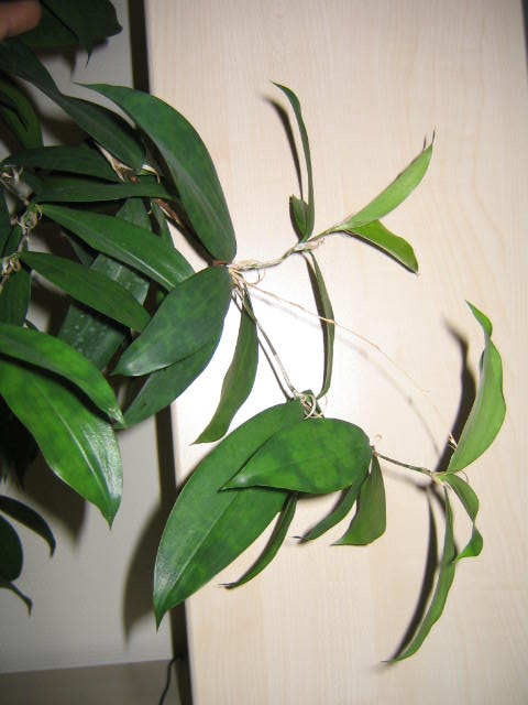 Hallo,mir ist da ein Mißgeschick bei der Pflege dieser ansonst sehr robusten und dankbaren Zimmerpflanze passiert. Hoffe sie überlebt es. Hatte zum Beschweren des Topfes einen Salzkristall auf den Topf gelegt und dieser hat wohl Wasser gezogen, was ich aber nicht gleich bemerkt habe.Nachdem ich gesehen habe, daß die Pflanze keinen Wassermangel hat, wie sie das sonst schön mit leicht hängenden Blättern anzeigt, sondern einen Salzschaden, habe ich sie gut durchgespült und umgetopft.Vorsichtshalber habe ich aber mal ein paar Fotos zur Bestimmung gemacht.Hatte sie mal in einem Restewaren-Laden gekauft, mir aber dummerweise nicht die Bezeichnung gemerkt. Ich meine irgendwas mit "Exotica".Einen Steckling hatte ich vor längerem schon in einen anderen Topf gesteckt und dieser scheint aus den Blattachseln auszutreiben.Die Stengel erinnern irgendwie an Bambus.