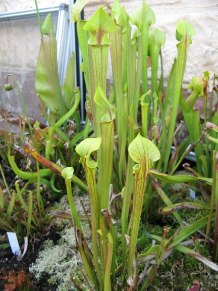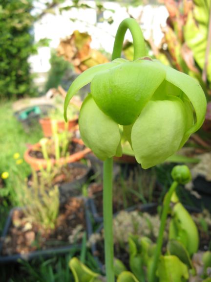 . Jetzt hocken meine Carnivoren alle in Töpfen, alten Waschbecken und meinem alten Nepentheskasten im Garten da ich wegen Teicherneuerung mein Moorbeet räumen mußte. Ich schick mal Blüten von anderen Sarracenienarten die hier bisher fehlten