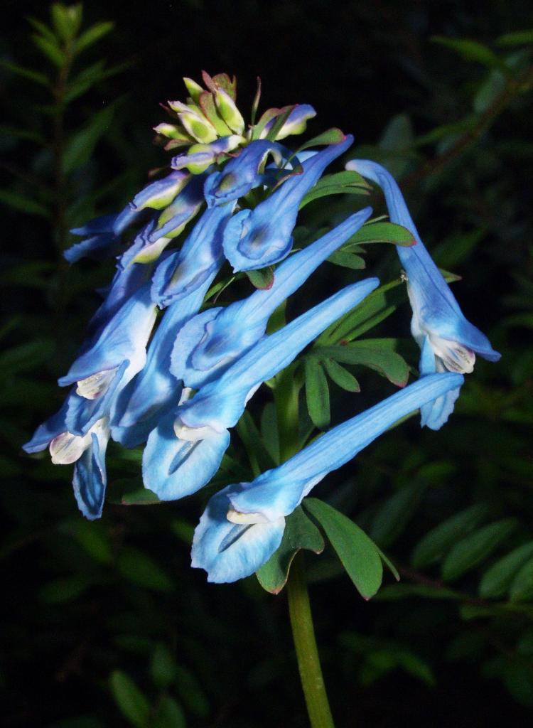 Viel kräftiger in dieser eigentümlich blauen Farbe (die nicht jedermanns Sache ist) ist Corydalis elata x cashmeriana. Diese Krezung hat sich bei mir auch als dauerhafter erwiesen als C. flexuosa x cashmeriana.