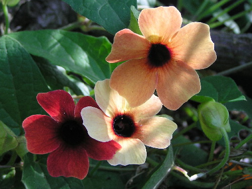 Thunbergia alata 'African Sunset', gibt's unter anderem bei Kiepenkerl, 10 Samen für € 3,65.Juli ist immer so schön bunt...Taglilie 'Patricia Fay', Agastache anisata und andere.Habe noch nie eine Schwarzäugige Susanne in diesen Farben gesehen