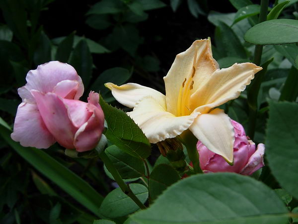 Mein Bild von Luxury Lace ist etwas dunkel, aber sie ist doch erstmal rosa mit heller Mittelrippe?Satin Glass blüht bei mir gerade und ich kann morgen mal ein Foto machen. Die ist recht hoch und würde farblich mit Deinem Bild, donauwalzer, genau passen.Ich habe sie beide und das werden wir schon noch herausbekommen