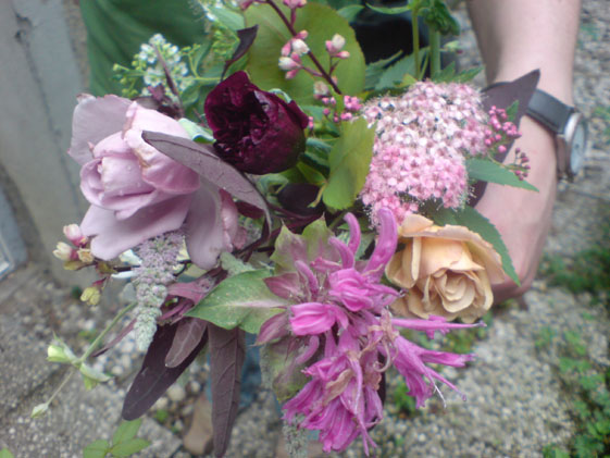 An alle Blumenliebhaber, die auch gerne mal was Hübsches mit Blumen aus dem eigenen Garten zaubern!Ich habe von Viridiflora vor ein paar Tagen einen tollen, selbstgemachten Strauss bekommen, und ich finde ihn genial :)Da tummeln sich Rosen (Juliane, Café (!), Viridiflora, Compassion), zartrosa Fingerhut, rosa Schleierkraut , Frauenmantel,Houtunye, (schreibt man das so