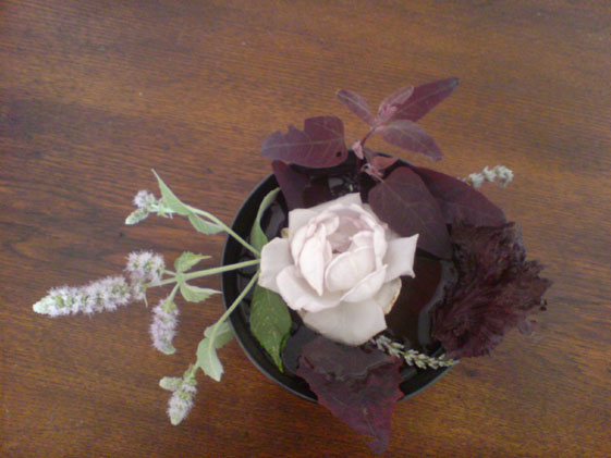 dabei sieht die rauchgraue rose stainless steel mit der roten melde und dem blatt von der perilla, sowie dem blütenzweig der silberminze eigentlich sohübsch aus :-\na ja, vielleicht kann man es ja ahnen