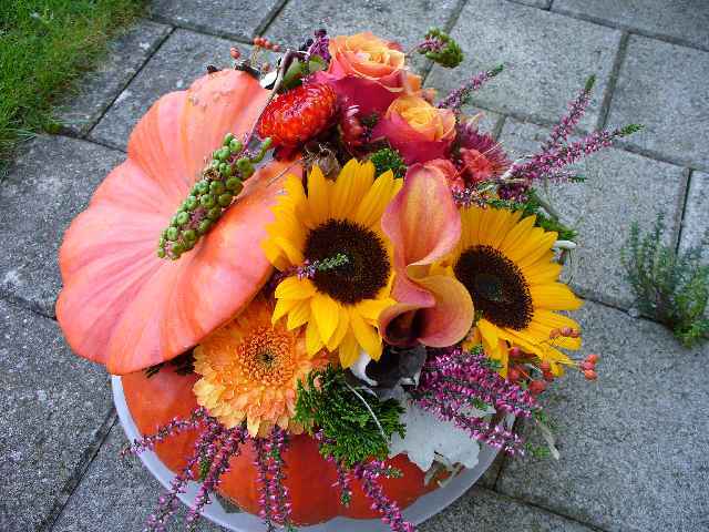 ), der Kurse anbietet, die ich fast immer besuche.Dieses Mal unter dem Moto: Herbst: Gestecke und Kürbise geschmückt.Hier nun die Bilderdiesen Kürbis hab ich ein paar Tage zuvor bei ihm erstanden, hatte noch einen Gutschein