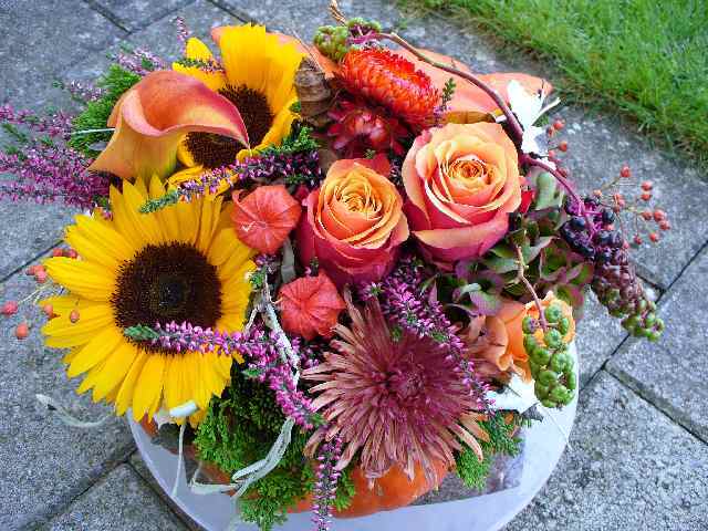 ) usw. und ein zarter Farn.Der Strauss sieht auch noch ein paar Tagen noch sehr schön aus :DHat jemand von Euch Bilder von seinen eigenen Kreationen?Bin gespannt auf Eure Blumengebinde. Ich bin sicher, einige von Euch sind ebenso begabt .....(selbstverständlich kann auch ein ganz kleines Sträusslein mit wenigen Blumen toll aussehen