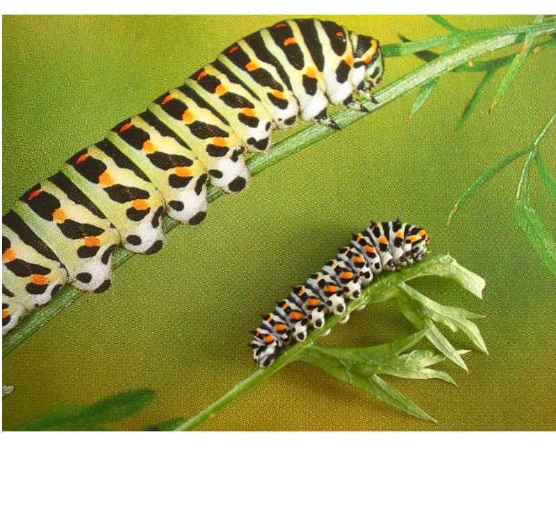 !Die "echte" Raupe ist die kleinere, das andere ist die Abbildung aus dem Buch....