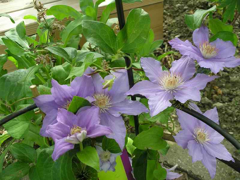 Mir gefällt die Idee Zwerg-Clematis-Hybriden an Rosen-Hochstämme zu pflanzen besonders gut. Bei einer Austin-Rose möchte ich das unbedingt ausprobieren und bei einem Flieder-Hochstamm (Syringa meyerii 'Palibin') würde ich es auch gerne versuchen. Was mir aber immer noch nicht so ganz klar ist: welchen Abstand zum Hochstamm sollte man wohl klugerweise lassen?