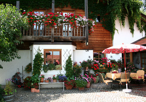 Auch am Haus dominiert der ländliche Blumenschmuck