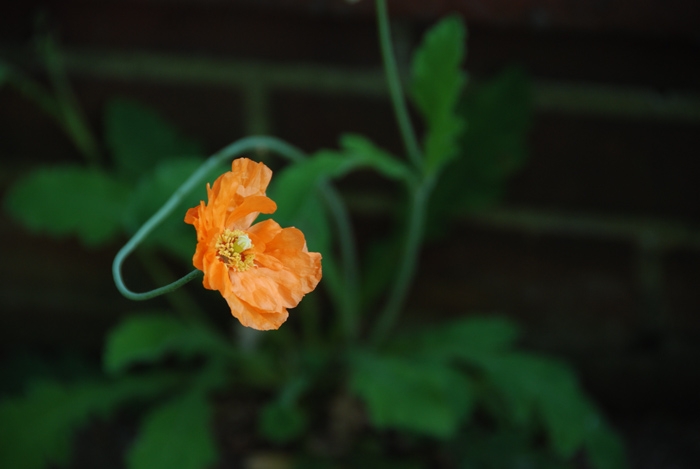 Dieser Papaver rupifragum wächst in einer Fuge vor dem Kellertreppenschacht. Ich liebe diesen kleinen Mohn, er sät sich an den unmöglichsten Stellen aus, ohne je lästig zu werden wie der gelbe Scheinmohn Meconopsis cambrica. Er hat zwar eine extreme Farbe, aber jede Blüte blüht nur einen Tag und es ist witzig, wenn er auftaucht und sein orangenes Köpfchen zwischen farblich möglicherweise völlig unpassenden anderen Stauden hervorstreckt