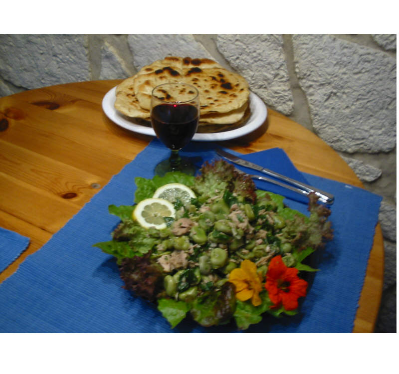 Also, als ich das mit dem Foto erwähnte, stand er gleich mit seiner Kamera da, ist doch nett, oder? Hab´s aber dann selber auch noch mal abgelichtet:Hier also der Salat aus den eigenen dicken Bohnen und Thunfisch und das Pfannenfladenbrot nach Angelas Rezept!War alles super lecker und als Nachtisch gab´s noch einen Tiramisu-Kuchen von GG´s Geburtstagsessen gestern (war sowas aus der Packung, mit Mascarpone anzurühren, aber sehr lecker....)