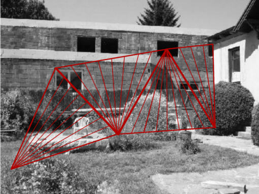 Hallo Gabi!Was hälst du von einem (vielleicht) provisorischen Blickschutz aus Seilen und Schnüren und einigen vom Schlosser schnell zu besorgenden Eisenrohren, die du sehr ästhetisch zu einem Rankgerüst verwebst? Bewuchs mit Wein, Knöterich, Efeu, Clematis plus Feuerbohnen (die für's erste Jahr!) machen dir in nullkommanix einen perfekten Blickschutz, hinter dem du ohne Probleme mit der Bauordnung über Jahre hinweg und in aller Ruhe dem Aufwachsen deiner Bäume und Sträucher zusehen kannst.Ich bin ein Intimitätsfanatiker und habe mit Hilfe von z.B. bewachsenen Seilen, genauem Auspeilen von Blickwinkeln und ein bißchen Fantasie bisher alle Einblickprobleme in allen Wohnungen und Arbeitsplätzen absolut zufriedenstellend und intimitätswahrend lösen können. Meine Gärten waren immer auch meine verlängerten Wohnzimmer, selbst in der Stadt mit dichter Bebauung.Hier ein denkbares Beispiel: