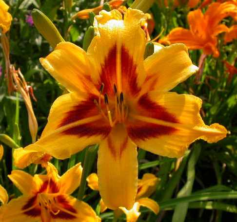 Und dann diese hier, ein Massenblüher mit eleganten Blüten weit über dem Laub. Ich hatte sie letztes Jahr schon mal gezeigt, aber da war das Foto grottenschlecht und ein Tipp schwierig. Daher noch ein Anlauf. Ist es Wideyed? (hmm, Callis, kannst du es eventuell bestätigen?)