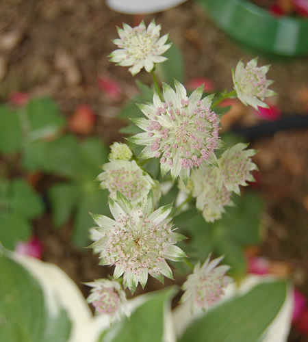 Jetzt eine Pflanze, die im Augenblick wieder etwas mehr in "Mode" zu kommen scheint, allenfalls auch deren farbigen Züchtungen. Die Sterndolde. Sie ist aber auch eine faszinierende Staude, ihre Sterne im Halbschatten, z.B. unter Sträuchern, lockern jeden Platz auf. Auf jeden Fall lässt sie mich jedes Mal stehen bleiben um sie zu bewundern.Astrantia major: