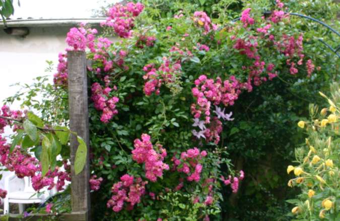 Danke Raphaela, Du bestätigst mir das, was ich mir schon als Trostgedanken zurecht gelegt hatte. Die älteren Rosen sind auch alle immer prächtiger geworden und bleiben seit Jahren gesund. Schwarzflecken hatte ich hier schon desöfteren, Rost und Mehltau aber eigentlich noch nie. Auch hat sich Kompost als Dünger besser bewährt als der gekaufte Rosendünger (der ja auch hässlich aussieht), zumal hier sowieso alles ins Unendliche wuchert (s. Bild von Super Dorothy).Ein Gutes hat es ja, dieses Rosenkränkelwetter: man kann gut erkennen, welche Sorten besonders robust, wetterfest und wenig krankheitsanfällig sind. Bei mir sind es die New Dawn, Schleswig87, Westerland, Super Excelsa& Dorothy, Santana, Werner von Blon, Flammentanz und Fishermen's Friend, die aber - bis auf New Dawn und Westerland - alle schon vor 5J. hier gepflanzt wurden.