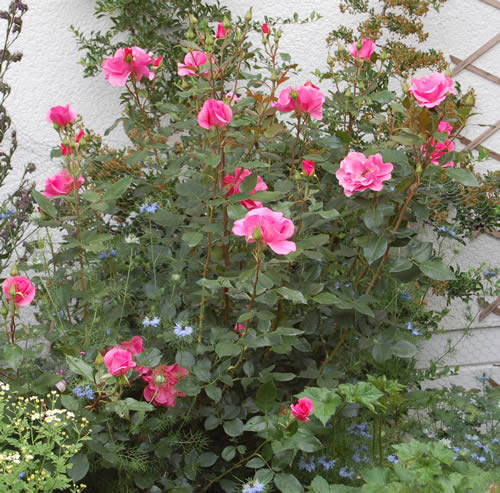 Hier wieder mal ein Ganzkörperfoto von einer Rose:Hofgärtner Kalb, der erst etwa 20 cm hoch ist, aber voller Blüten trotz dauernden Regen, der ihm scheinbar nichts ausmacht.