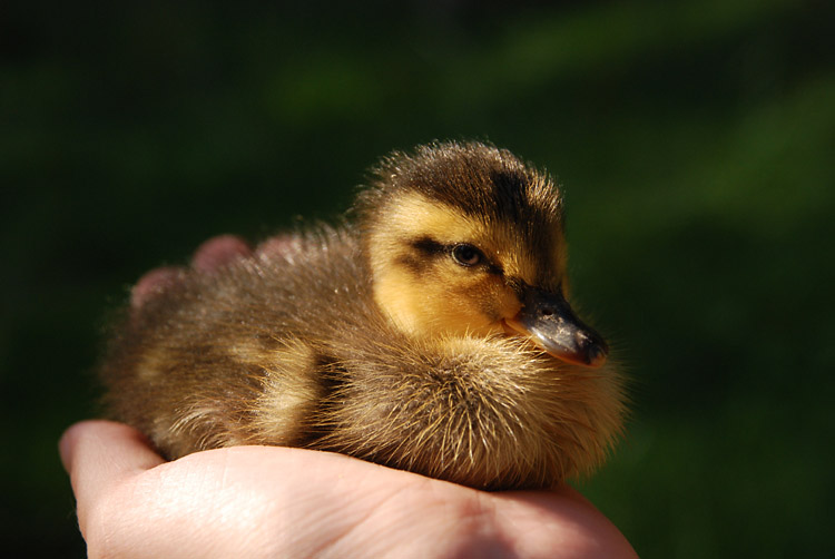 Nochmal ich. Es gibt wieder junge Enten. Vier an der Zahl. Diese hier ist in meiner Hand eingeschlafen. Alle sind einen Tag alt.