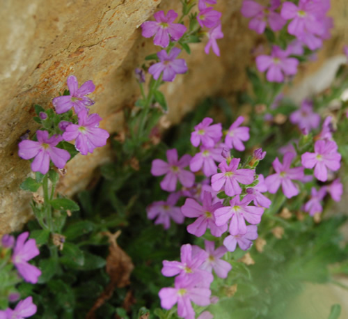 Es klebt so richtig in einem dünnen Mauerspalt und bringt Farbe in die Steine. Leber- oder Alpenbalsam.Erinus alpinus