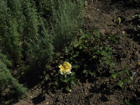 In jedem Viertel des Rechteckbeetes steht ja immer eine von vier Rosen. Da habe ich Rosen aus verschiedenen Quellen als Vergleichspflanzung. Mit der einen oder anderen Fehllieferung wie ich grad sehe