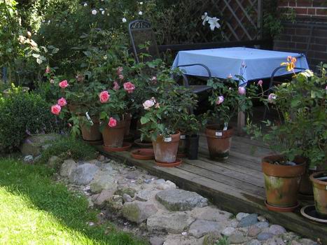 Teerosen gelten ja als empfindlich, trotzdem versuche ich viele draußen , allerdings nicht grad in den nassen Teichbeeten. Der größte Teil ist aber in Töpfen zum Beispiel an der Südwand am Sitzplatz.Das auspflanzen muß vorbereitet werden, denn ich muß die Sorten vorher als Steckling oder oculiert sichern, sonst fallen mir wohlmöglich seltene Sorten aus.Doch wo hat er da die 150 Teerosen versteckt?