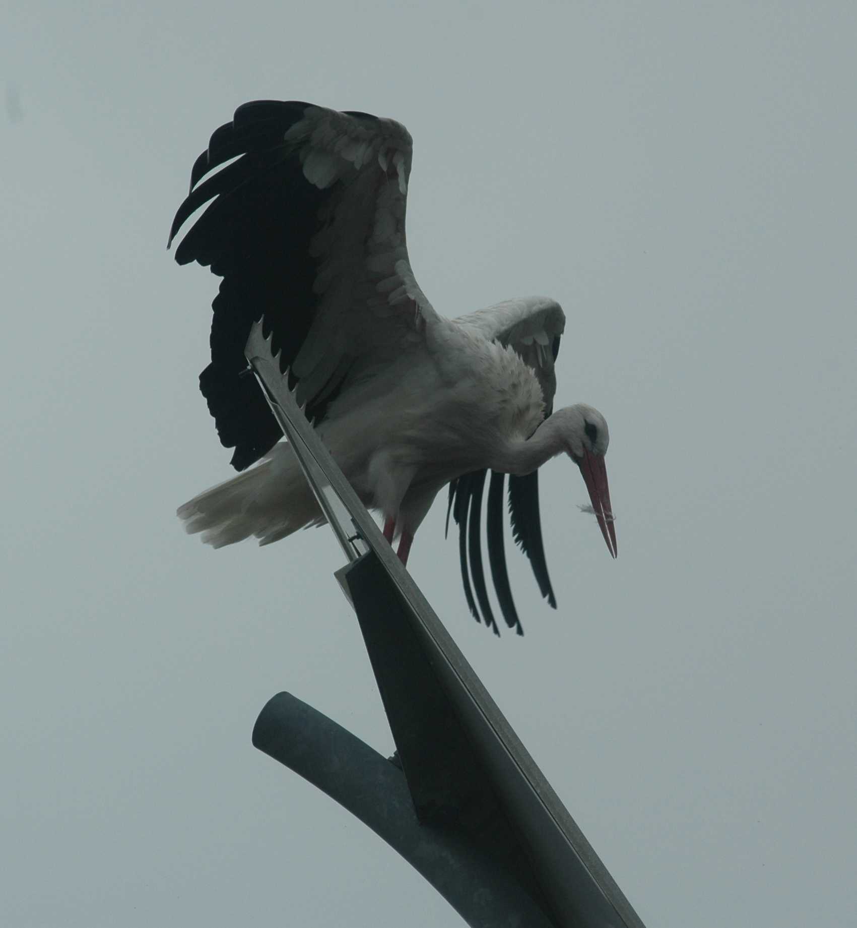 Heute Mittag um 16 Uhr 45 ist dieser Storch auf unserem Hausdach gelandet!