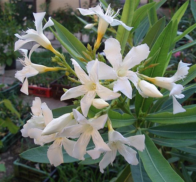 "Nerium oleander enthält das herzwirksame Glykosid Oleandrin.Es bewirkt Kopfschmerzen, Übelkeit und Krämpfe in der Stärke des Giftes des roten Fingerhutes. Bei stärkerer Dosierung können Herzrhythmusstörungen und Blockierungen der Erregungsleitung am Herzen auftreten, die zum Herzstillstand führen und tödlich enden können. Manchmal gelangt das Gift bei der Arbeit mit der Pflanze durch kleine Wunden in die Haut und kann Reizungen auslösen. Da die Blätter des Oleander extrem bitter schmecken, ist die Gefahr gering, dass kleine Kinder Oleander im Garten verzehren könnten. Jedoch schreiben schon antike Dichter über die Wirkungen der Pflanze, und im Mittelalter ist der Saft der Pflanze gegen Mäuse und Parasiten verwendet worden. Der gelbe Oleander gilt als besonders giftig."Aus: Wikipedia... ein bißchen was fürs Herz wäre ja auch mal nett.![]()