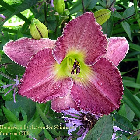 Eine Taglilie, die immer sehr spät mit der Blüte beginnt und jetzt noch viele Knospen hat, ist 'Lavender Shimmer', leider sind z.Zt. wettermäßig keine erstklassigen Blüten zu sehen.