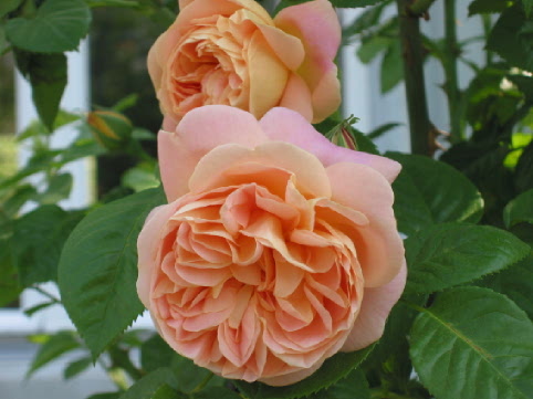 Hier braucht man keine Sonnenbrille: Belkanto und Mme Bérard. Obwohl Belkanto nicht sehr dunkel ist, sehen die Farben zusammen trotzdem gut aus (finde ich jedenfalls, das Foto ist zwar nicht besonders scharf, die Farbtöne sind aber gut wiedergegeben) weil Madame eben vornehme Blässe zeigt. Mit einer eher orangenen Rose, wär's schon nicht mehr so mein Fall. Außerdem hat Mme Bérard ja viel Rosaanteil...