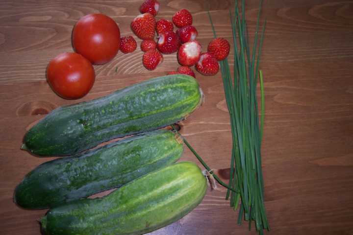 tomaten,spanische gurke zucchini und salat