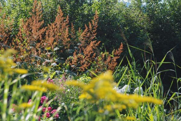 Hallo Cydora, das ist Blutweiderich, Lythrum salicaria, eine wirklich tolle Pflanze und viel zu selten in Beeten verwendet.Hallo Manfred, von der Oudolf-Seite bin ich durchaus ein wenig inspiriert, schön, dass man das auch merkt. Mich hat gestern schon einmal jemand per PM wegen der Pflanzen gefragt. Ich kopiere diese Liste (um den vermutlichen Namen des roten Sanguisorba ergänzt) hier herein. Es sind aber noch mehr Pflanzen drin, nur sieht man die zur Zeit nicht.Verbena hastataLythrum salicariaVerbena bonariensisPersicaria amplexicaule 'Firetail'Sanguisorba canadensisSanguisorba tenuifoliaVernonia crinitaThalictrum delavayi 'Hewitts Double'Agastache rugosaCalamagrostis acutifloraPhlox rosaGalega officinalisVLG, Katrin (wie immer: Fragen bitte einfach stellen)