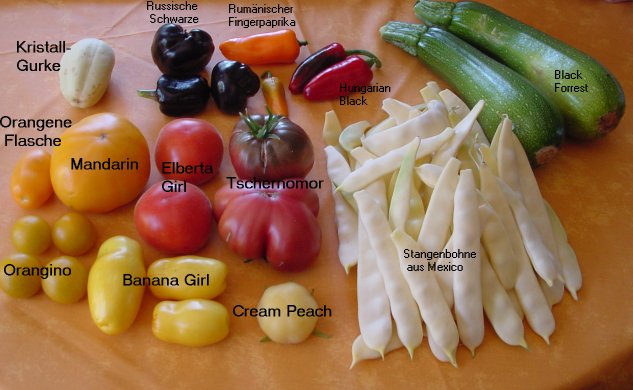 Heute das hier (die geschossenen Kohlrabis standen zwischen den Kartoffelreihen):Roseval, Edzell Blue, Linda, Adretta, gelbe Zucchinis, Freilandgurken, grüne BöhnchenAusserdem eine Handvoll reifer schwarzer dornenloser Brombeeren und eine Handvoll Zuckererbsen, die auch zwischen den Kartoffeln standen.