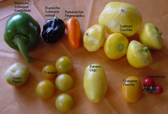 . Außerdem mußte ich 2 grüne Paprika noternten, die einen Sonnenbrand bekamen, nachdem ich die Pflanze neu aufgebunden habe.Irina, ich hätte nie gedacht, daß Auberginen auch so aussehen können. Unglaublich, was ihr alles für exotisches Zeug erntet!