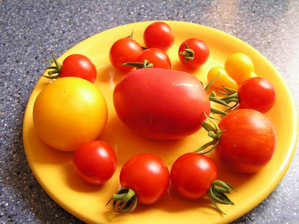 Hallo Lisl,da kann ich Dir nur zustimmen. Die Tommys schmecken am gleichen Strauch bei unterschiedlicher Witterung nicht mal alle gleich.Ich denke, neben der Geschmackseigenschaften der einzelnen Sorten und der Witterung, spielen auch die Erde und die Düngung eine große Rolle bei der Geschmacksbildung der Früchte.Bislang bin ich mit meinen reifen Tommys auch sehr zufrieden. Sie haben alle einen fruchtig feinen Geschmack, wobei ein paar ganz besonders gut schmecken. ;)Dein Erntefoto ist klasse !!!Herzliche Grüße aus IO nach OÖCharlotteDas könnte schon sein, denn zu überreife Tomaten werden auch oft mehlig und verlieren an Aroma! Drum kann ich dem ganzen Verkosten und vor allem Beurteilen nicht viel abgewinnen: alles steht oder fällt mit der Witterung ! Bei uns schmecken sie alle dieses Jahr so herrlich wie noch nie! Die Früchte von ein- und derselben Pflanze können so unterschiedlich schmecken - je nachdem, ob sie bei genug Sonne und Wärme oder bei Regenwetter reif werden können!