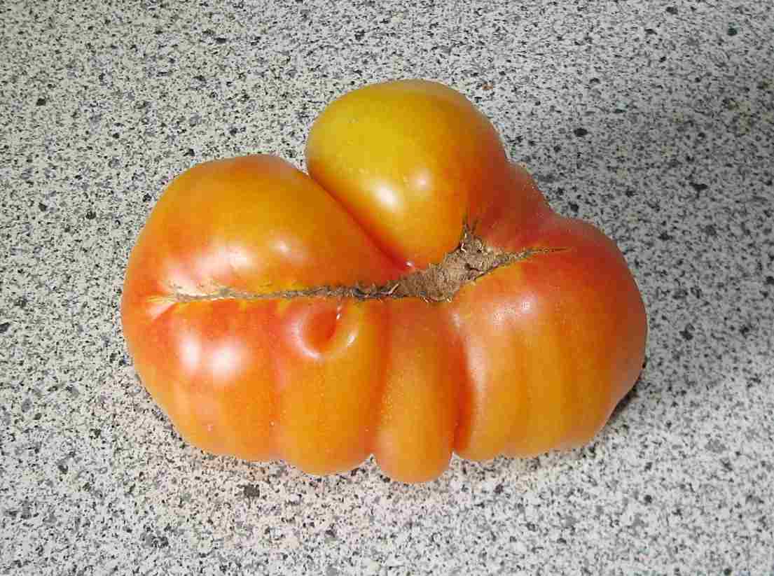 Grüß Euch,ich habe dieses Frühjahr Orange Queen Samen gekauft und 5 Korn ausgesät. Wie ich schon berichtet habe, schmeckt die Königin sehr gut und ist voll meinen Erwartungen nachgekommen.Vier Samenkörnchen wurden normaltomatenblättrig, eins der Samenkörnchen wurde eindeutig kartoffelblättrig und zwar wesentlich größerblättrig, als bei Matina. ???Neugierig wie ich bin, hab ich sie natürlich gepflanzt ;DDie Früchte entwickelten sich zu Fleischtomaten, zwischen 300 und 600 g, glattschalig, ein bischen geformt wie Nieren und waren bis vor zwei Wochen dunkelolivgrün und steinhart. Nun sind sie hellolivgrün und butterweich. Ich habe gestern eine geerntet und die ist mir beinahe aus der Hand getropft, so weich und saftig war die schon. :DEntsprechend mild und süß im Geschmack. Für einen Zufallsfund schmeckt sie super, ich werde heute die nächste ernten, etwas früher, damit sie noch etwas mehr Säure hat.Ich nehme nicht an, dass es eine Zufallskreuzung ist, sondern eher, dass wie Lisl grd beschrieben hat, ein Körnchen beim Trocknen mit reingehüpft ist.Kennt jemand eine kartoffelblättrige, reichtragende spät- und grünabreifende (keine Spur von gelb oder rot, weder an Schale noch im Inneren) Tomatensorte ?Für Green Giant (ist die einzige kartoffelblättrige, die ich gefunden habe) ist sie denk ich zu klein. Oder sind da die Beschreibungen wieder mal wesentlich zu hoch gestapelt ?