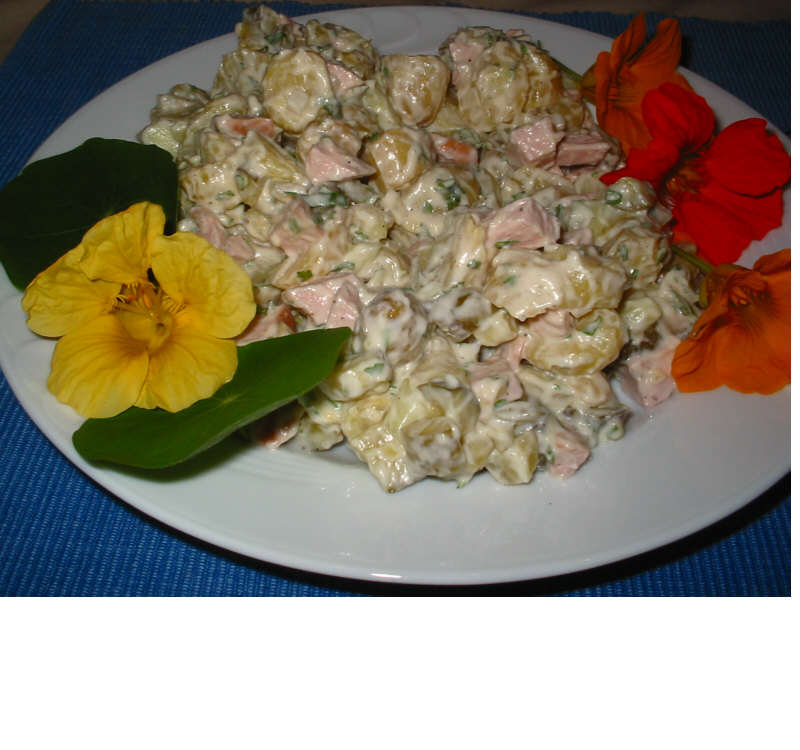 Was ist denn darin, Netti?Bei uns heute die andere Hälfte des Blätterteig-Gemüsegratins von gestern und Kartoffelsalat aus den Rosa Tannenzapfen (leckere Kartöffelchen, wirklich, war das erste Testessen nach dem Ernten...)