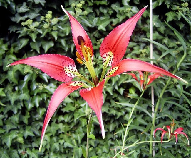 Ich habe sie bestäubt, Samen gibt es also bald. L. catesbaei ist extrem schnellwüchsig, im ersten kann, im zweiten Jahr sollte sie blühen. Ich kann dir natürlich auch Pflanzen anbieten, aber das lohnt sich hierbei m.E. nicht.L. catesbaei ist für eine Lilie in vielerlei Hinsicht ungewöhnlich: Lichtkeimer, extrem saures Substrat, staunass, vollsonniger Standort. Ich halte sie zu sechst in einem sehr grossen Topf, das Substrat besteht aus Torf und Quarzsand, etwas Vermiculit und Osmocote dazu. Frosthart ist sie natürlich nicht, ich überwintere sie im beheizten Kalthaus, ein Wintergarten oder heller Dachboden sollte es aber auch tun.Wenn du magst, schick mir eine E-Mail (über mein Profil). Alles weitere können wir dann gern miteinander besprechen. Gruß,Denis