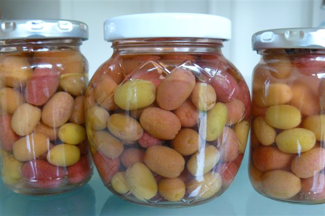 in dem Rezept, dass ich erhalten habe, werden die noch unreifen Kornelkirschen zu falschen Oliven eingemacht, momentan sehen meine Gläser so (Bild) aus