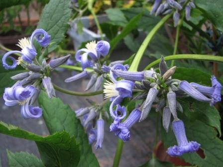 Vor ein paar Jahren habe ich in NL eine C. integrifolia 'McBaikal' gekauft, der Name scheint etwas suspekt zu sein; Hull benennt als Fundort den Baikalsee. Auf jeden Fall ist sie ein Gartenschatz, blüht viel länger als sonst die Art, hat die typische Integrifoliablüte in dunklem Violettblau und ist sehr nieder, so dass ich sie in mein Geröllbeet gepflanzt habe. Der Samen keimt gut, und die meisten Sämlinge haben bereits im zweiten Sommer geblüht. Laub wie C.integrifolia, Blütenform in seiner Bandbreite ebenfalls: glockig, gedreht, groß, klein, hell und dunkel (leider "nur" alle Blautöne, bisher).Es macht Spaß und bringt schnellen Erfolg, Staudenclematis zu säen. Sie nehmen nicht so viel Platz ein wie die großen, kletternden Verwandten, sind viel robuster- man muss nur mal auf Mehltau achten.
