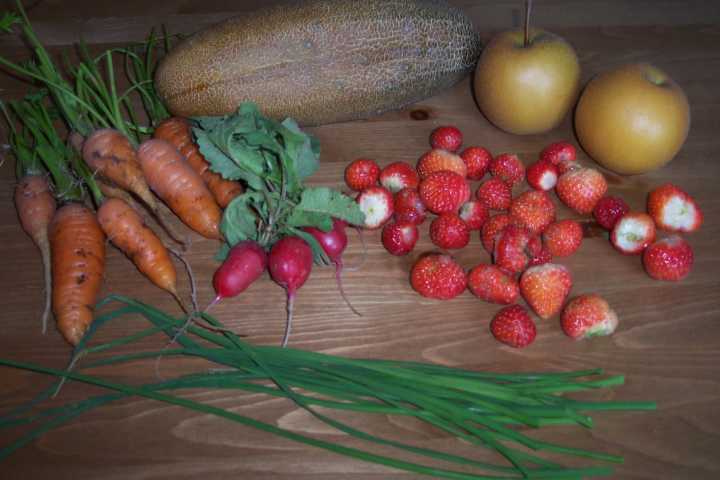 Erdbeeren? Da muss ich nachher gleich mal schauen, ob da noch was nachgekommen ist....Bei mir gibt es jetzt endlich Stangenbohnen. Und noch einige Tomaten. Sellerie ist auch reif...