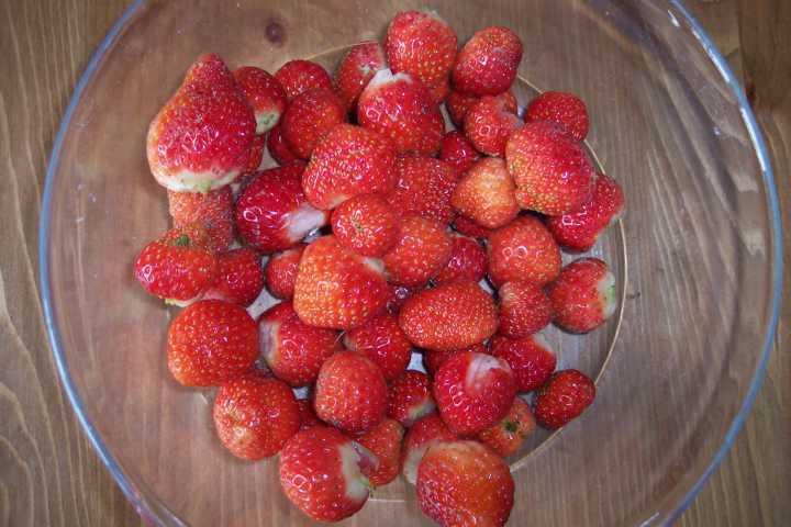 Ein ganz paar wenige Erdbeeren der Mara du Bois hatte ich auch, diesmal den anderen hungrigen Gästen zuvorgekommen. Nächstes Jahr werde ich ein Netz spannen, sonst kann ich nie was ernten!Zum Abendessen mal wieder einen Bund Bunten Mangold, Fotos gab´s schon mehr als genug davon.....