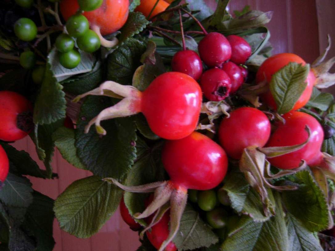 rusianto, Dein Türkranz gefällt mir sehr! Was genau hast Du denn da alles verarbeitet?Bei mir vergehen Hagebutten u.a. Beeren immer recht schnell, will sagen sie verschrumpeln zusehends, da die Haustür noch recht viel Sonne abbekommt.Gibt es da irgendeinen Trick, sie haltbarer zu machen?
