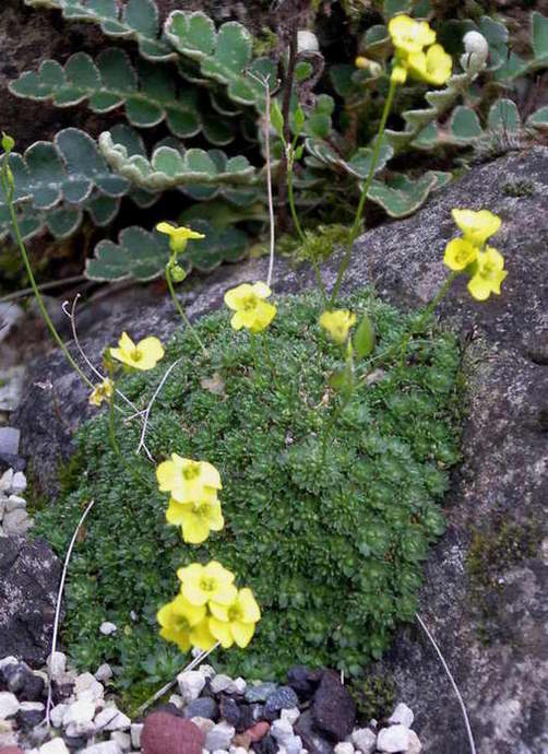 Ein Hungerblümchen, wertvoll durch das herbstliche remontieren. Läuft bei mir unter dem Namen Draba imbricata.