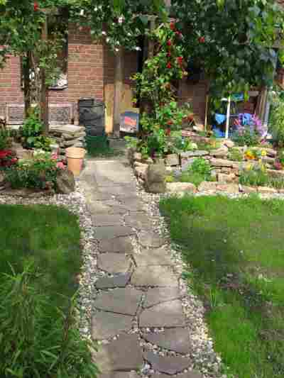 WOW... mit so vielen Antworten in kurzer Zeit hätte ich nicht gerechnet. Danke an Alle.Ich glaube ich probiere den Vorschlag von @hrtk. Mit den Natursteinplatten sah klasse aus.PS: Gegen das Unkraut benutze ich son Flies aus der Baustoffabteilung. Wasserdurchlässig, aber es wächst nüscht durch.