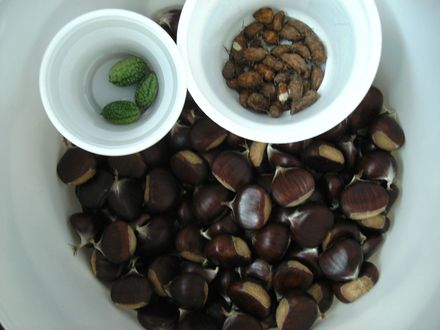 pocoloco, was machst du denn mit den Zucchini alles?Meine Tochter hat vorgestern im Wald Maroni gesammelt. Das andere sind nochmal die Erdmandeln und Ziergurken aus dem Garten.