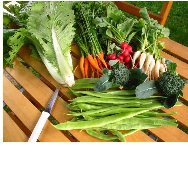 Heute:Paprika, Tomaten, Chili, Zuckererbsen, Broccoli, Stangenbohnen, Mangold, Zucchetti, Schnitt- und Feldsalat