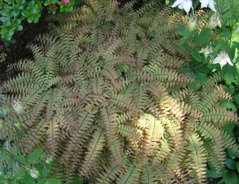 Adiantum aleuticum ´Japonicum´ treibt rot aus, vergrünt im Laufe des Sommers