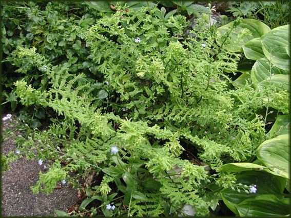 Gilt auch für den Trichterfarn, Matteuccia struthiopteris, und natürlich für die Zwerge wie Schriftfarn und Steinfeder, die gerne in Mauerfugen wachsen.Welcher auch recht häufig auf Kalk, d.h. in Mauerfugen vorkommt, ist Asplenium ruta-muraria, die Mauerraute. Leider ist es mir bisher nicht gelungen, ihn in unserer Mauer anzusiedeln.Im Übrigen meine ich festgestellt zu haben, dass Farne hinsichtlich der Bodenverhältnisse recht tolerant sind. Man könnte fast schon von bodenvage sprechen. Hauptsache es ist humos.