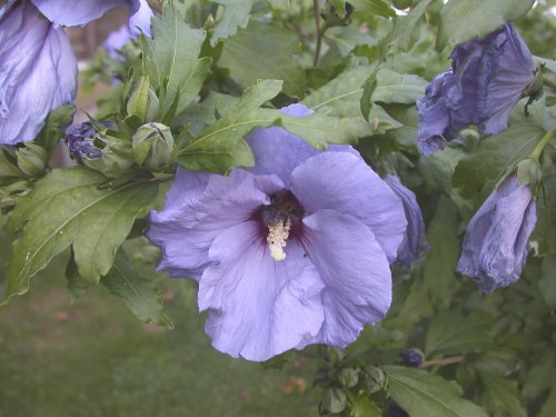 Derzeit ist mein Hibiscus 'Blue Bird' voll erblüht.