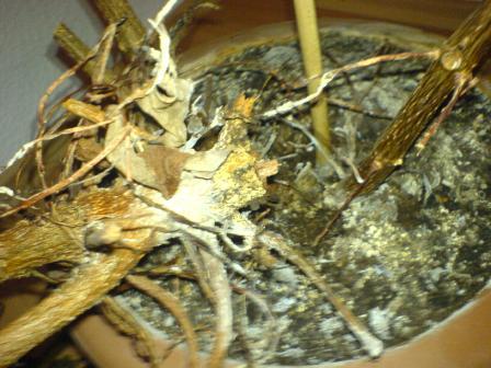 Ne, ich kann nichts ungewöhnliches erkennen. Also er hat keine Tierchen, er stirbt einfach nur so langsam ab.