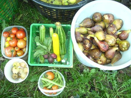 Gestern das: (Unter den Bohnen sind noch einige Paprikas und dahinter Quitten)