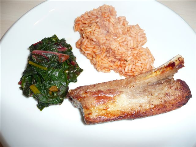 bei mir gab es heuteGurkenköpfchen (Gurken-Terrine in Köpfchenform) auf Blattsalat mit Thonmoussegebratene Rippchen mit Tomatenreis und gedämpften Mangoldblätternund schon wieder Süssmostcreme